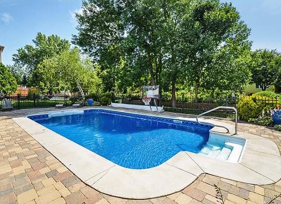 Beautiful 2 story home w/4 bedrooms and 4 bathrooms, Master bedroom with vaulted ceiling, full master bath and huge walk in closet, Main floor family room with gas fireplace, sliding doors from eating area to maintenance free deck overlooking a gorgeous in ground pool, 32x16, new liner, newer pump, robotic pool cleaner and cover, very low maintenance costs. In ground sprinklers. Extra storage overhead in garage.