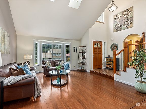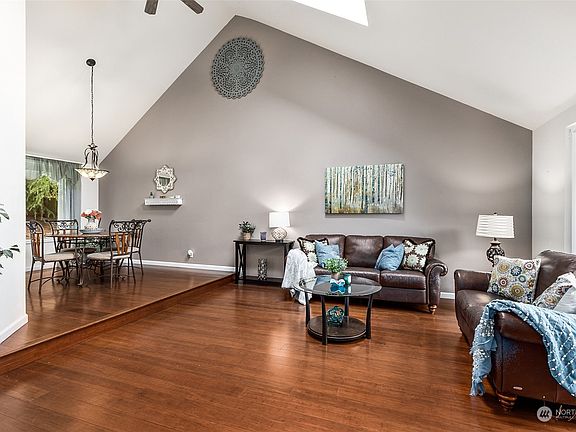 Updated Bermwood Beauty on corner lot backs to forested greenbelt for added privacy near Tolmie State Park, Nisqually Wildlife Refuge & 3 golf courses! Rich bamboo floors under double-skylight vaulted ceilings lead thru arched doorways to eating-bar seating in ebony-granite & white kitchen overlooking stacked-stone new gas fireplace in cozy family room. Bay window dining view of large patio in lush, tree-lined fully-fenced yard. Handsome wood & iron spindle staircase leads to engineered hardwoods in all 3 bedrooms. Deluxe primary suite has 2 separate bath vanities, glass & tile shower plus deep walk-in closet. NEW 2022 roof! Storage/workbench space in garage and low maintenance landscaping. Less than 20 mins to JBLM or downtown Olympia!