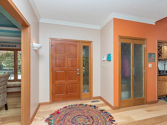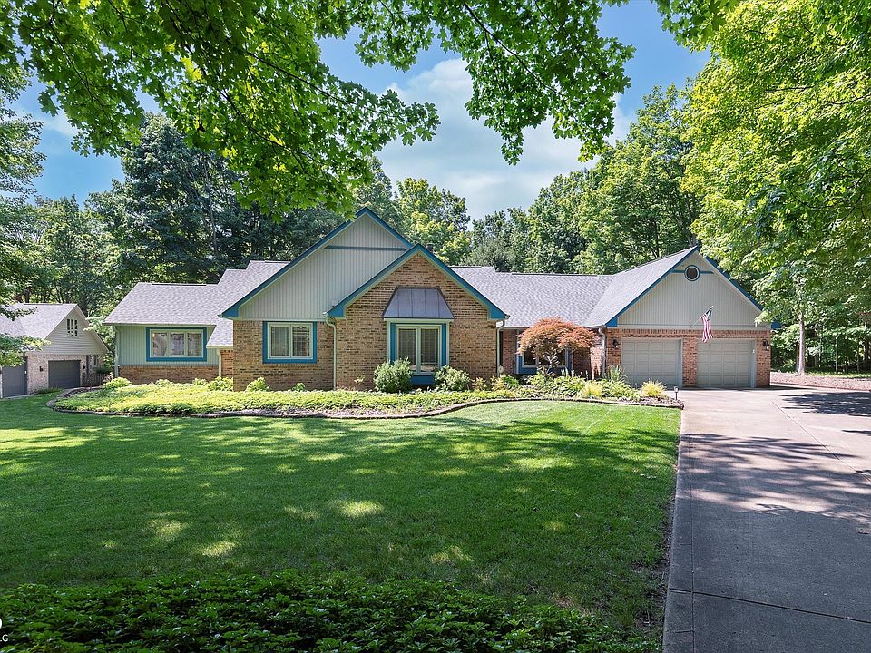 This is the one! Set in the tranquil Woodacre neighborhood near Eagle Creek Park, this custom, contemporary ranch home is situated on an acre of green, wooded landscape. The home spans over 3000sf and boasts living spaces flush with natural light, including a gorgeous sun room to enjoy almost year-round. The great room features hardwood floors + vaulted ceilings + recessed LED lighting + wet bar + wine fridge + fireplace...looking out to park-like scenery. The home cook will appreciate the kitchen, complete with a center island + prep sink + granite countertops + cabinets galore. The primary suite is a retreat featuring skylights + heated floors + walk-in tile shower and tub + reading nook as well as separate entrance onto a sprawling composite deck and hot tub! Don't forget the upstairs bonus room, which makes for the perfect, private office or game & entertainment area. You'll love the location, convenient to highways, shopping, dining, schools, and the city's largest park, where walking & biking trails are just across the street...It's a must see!