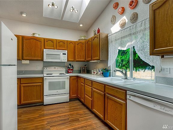 Bright, cheery Applegate rambler on over 1/2 acre. 3 bedroom, 1.75 bathrooms. Easy care laminate flooring throughout the kitchen, dining and living room. Skylights in the kitchen and master bathroom bring in lots of natural light. Nice size walk in closet adjacent to the master bathroom. New roof in 2017. Heat pump, 2 car garage, RV parking, fully fenced very large backyard and room for a shop.