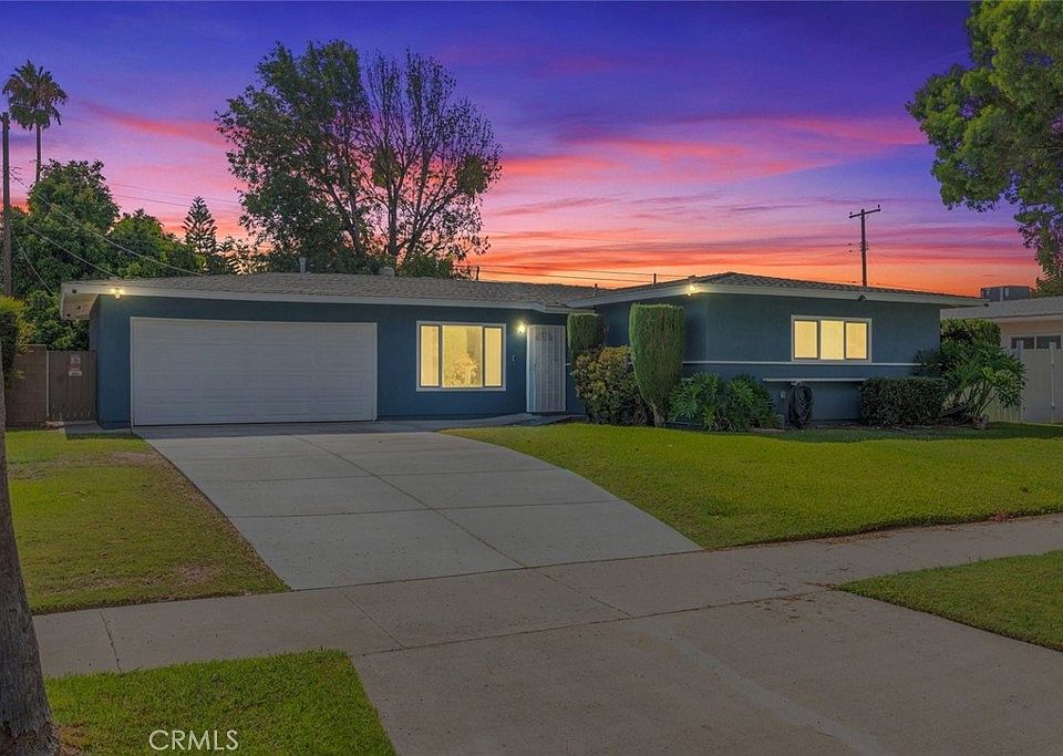 Swimming poolOrange treesTwo car garageNew exterior paintNew cupboardsGranite countertopsGrass area