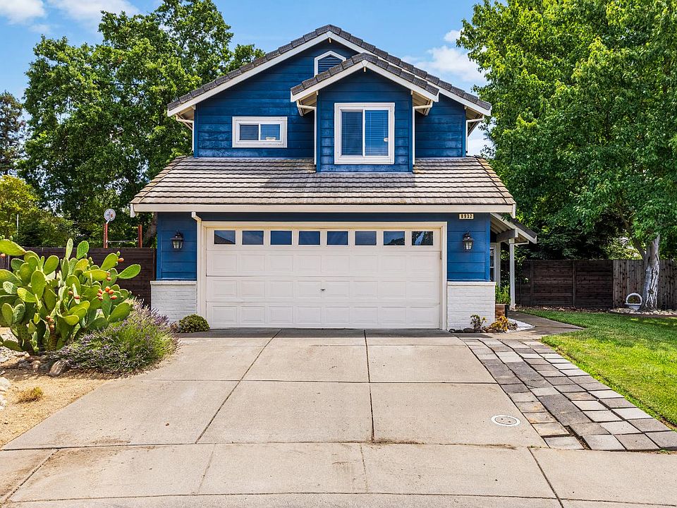 Welcome to this stunning two-story home in the heart of Elk Grove. This beautifully maintained property features an airy open-concept living room with luxury vinyl plank flooring, soaring ceilings, and new windows that fill the space with natural light. The modern kitchen offers crisp white cabinetry, dark grey countertops, and a center island for easy meal prep. Adjacent is a cozy family room with a charming white brick fireplace and a breakfast nook with recessed lighting. Upstairs, the spacious primary suite includes plush carpeting, abundant natural light, and a sliding barn door leading to the elegant ensuite bathroom with dual sinks, a soaking tub, a glass-enclosed walk-in shower, and a generous walk-in closet featuring a new custom closet storage system. Additional highlights include a new HVAC system installed in 2019, all new windows and blinds in 2021, and new fencing completed in 2021. Enjoy the expansive backyard with a large concrete patio, stylish pergola, raised garden beds, and a quaint storage shed - perfect for outdoor living and entertaining. Complete with an attached 2-car garage, this home offers the ideal combination of comfort, style, and functionality, just minutes from shopping, restaurants, and 20 minutes away from Clarksburg, known for its wine tasting.