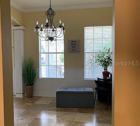 You will love this home from the moment you arrive and step on to the welcoming front porch. Located in the desirable community of Connerton, The open floor plan offers 3 bedrooms and 2 baths with an extra room-den, office or a playroom, a formal dining room, large family room off of the kitchen, over sized laundry room and plenty of storage. The spacious kitchen, boasts 42" wood cabinetry, Corian countertops, stainless steel appliances, an island and an eat-in nook area. Open to the family room it offers a wonderful space to entertain your family and friends. Just off the family room is one of 2 spacious screened lanais. The double door entry to the master suite is the perfect retreat. Upon entering you will see the large walk in closet and master bath with a double vanity, shower and garden tub. The spacious master bedroom features a tray ceiling and large sliders open to the 2nd screen lanai for your enjoyment. The family activities here are endless. The community offers a resort style clubhouse and water park, tennis, volleyball, fitness center, parks, playgrounds and much more. Make your appointment today! All measurements are approximated.