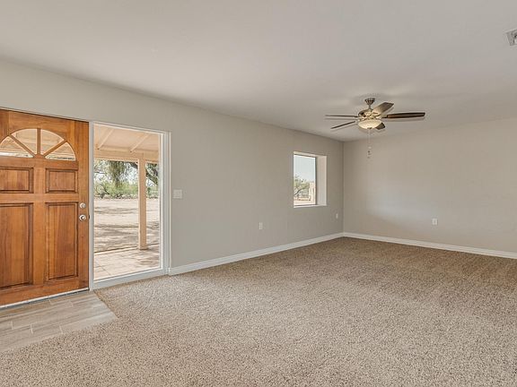 Spectacular stucco 3 bedroom 2 bathroom home on over an acre of secluded horse property! Spacious split floor plan, stylish kitchen with granite counter-tops and Seller will provide new stainless steel appliances including smooth-top electric range, OTR microwave & dishwasher with accepted offer. Large living area with new dual pane windows to accent the lovely views and spread lots of natural light throughout. Beautiful wood look tile flooring in the kitchen and bathrooms along with new soft plush carpet in the living area and bedrooms. Master retreat features his and hers closets and a full ensuite with dual vanities. Completely finished guest house with full bathroom and wood look tile flooring throughout. Excellent outdoor space offering gorgeous views in every direction. Agent/Owner