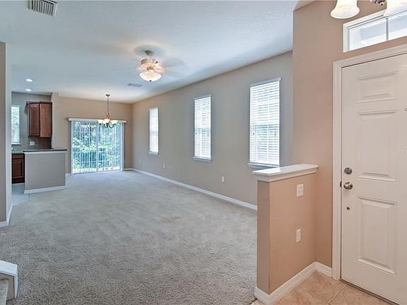 Come see the relaxing pond view at this 2 bedroom, 2 and a half bath townhome centrally located in Riverview. First floor includes the living area with plush carpet throughout. 18" Ceramic tile and 42" maple cabinets with crown molding line the cozy kitchen. Solid stone counters offer plenty of space for meal prep. The master bath is located on second floor, which includes dual comfort height sinks and ceramic tile as well. No need to walk up and down stairs while doing laundry! A stackable washer and dryer are included upstairs. Perfect for a starter home, or a long term rental investment. The Eagle Palm community offers easy access to I-75, U.S. Hwy 301, and Selmon Expressway. The entire community is in the process of being repainted, with preparation already completed. Call for your private showing today!