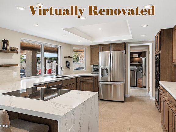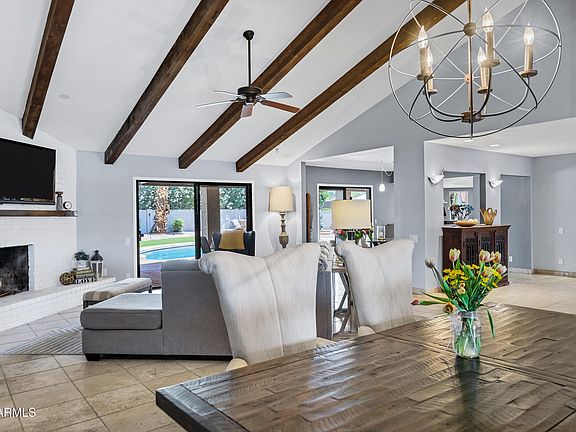 Incredible home in the heart of McCormick Ranch, nestled on an expansive 17,472 square foot corner cul-de-sac lot! This exceptionally maintained block construction property blends timeless character with some thoughtful modern updates, while still offering opportunities to add your own unique touch. All while offering a rare opportunity to live in one of Scottsdale's most coveted neighborhoods. As you step inside, you're greeted by soaring vaulted ceilings with exposed wood beams and a charming brick fireplace that creates a warm, inviting atmosphere. The open-concept layout seamlessly connects the living area with the kitchen, making it the perfect space for both daily living and entertaining. Natural light pours into every room through new windows (2024), enhancing the home's welcoming feel. What truly sets this home apart are the generously sized bedrooms. The primary suite is nothing short of massive, measuring 30 by 16 feet, and includes a cozy sitting area with an gorgeous electric fireplace. The en-suite bathroom features a luxurious remodeled walk-in shower with a carwash-style shower system, an updated dual-sink vanity, and a spacious walk-in closet. The additional bedrooms are also oversized, each with its own walk-in closet, and the den, overlooking the front courtyard, provides a bright, versatile space ideal for a home office or reading room. The home has all the mechanical updates you could hope for, ensuring peace of mind for its next owner. Recent improvements include a new water heater, fresh exterior paint, refinished flat roof and a new garage door opener in 2025, along with dual-pane windows installed in 2024. Owned solar installed in 2024 for massive energy savings! The AC units were replaced in 2020, the pool equipment was updated in 2023, and the pitched portion of the roof was redone in 2017. The pool was resurfaced in 2016. Plus, updated front yard landscaping (2024) adds to the home's curb appeal. Step outside into your backyard oasis, where a full-length covered patio with a beautiful tongue-and-groove wood ceiling invites you to relax or entertain in style. A sparkling play pool, gazebo, artificial turf, and powered storage shed complete this incredible outdoor space. The bathrooms all feature skylights that fill them with natural light, and a convenient powder room is located just off the kitchen for guests. The oversized two-car garage offers ample space for storage, bikes, or recreational gear. Located in the heart of McCormick Ranch's scenic greenbelts, lakes, golf courses, and some of the area's best local restaurants, shops and A+ schools, this home delivers the ideal Scottsdale lifestyle. This is a rare opportunity to own a truly special property in an unbeatable location. This solid block construction home offers an incredible foundation and layout, with all the major mechanical updates already completed, giving its future owner the perfect canvas to make it their own.