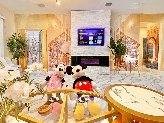 Only 15 minutes drive to Disney world, Hollywood Studio, animal kingdom, promises an unforgettable stay with Disney movie themed bedrooms, enjoy luxurious amenities: home theater, game room, pool, jacuzzi, club house, gym, and more within the resort. Nearby, find Walmart, CVS, 7-11 and dining options. Perfect for family friends events, it's a dream stay for Disney lovers and adventure seekers alike.