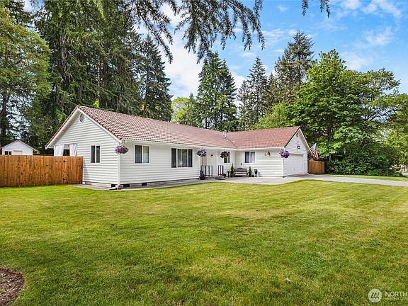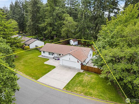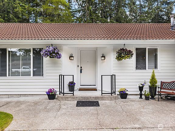 Charming Rambler in Forested Open Space Neighborhood- Enjoy space, serenity, and style in this delightful rambler set on a generous .29-acre lot, backing to peaceful forested open space. A classic tile roof adds to home's curb appeal in one of the area's most desirable neighborhoods. Inside find a spacious den/office/bedroom with a striking paned glass wall. Scandinavian-inspired kitchen located next to the dining area and covered porch for effortless indoor-outdoor entertaining. The generous primary suite includes two closets and a private ¾ bath, while mud/laundry room offers additional pantry space. The oversized two-car garage includes generator wiring already in place. All 17 min to JBLM or State offices and 7 minutes to town!