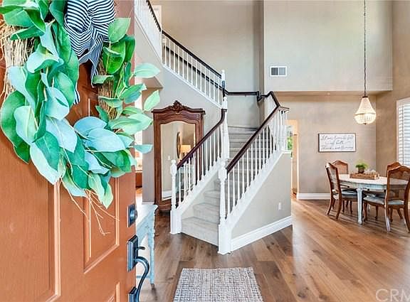 Gorgeous, turnkey pool home located in the beautiful town of Orangecrest. Begin with the incredible curb appeal with brick planters and garden lighting for the tropical themed oasis. Watch the kids play from your front porch. Walk in and fall in love with the engineered hardwood European Oak flooring throughout. Enter into the formal living and dining room and be impressed with the classic wrap around staircase. High base boards, custom wood plantation shutters and newly painted inside and out. Through the dining room you'll find the beautifully upgraded kitchen featuring stainless steel appliances, granite counters with custom tiled backsplash and a farmhouse kitchen sink with a bay window. The kitchen extends into the great room which is highlighted with a fireplace and custom built-in shelving. Downstairs you find the laundry room, a full guest bath and an office/playroom/bedroom. Upstairs you'll find 2 very comfy guest rooms, a large loft, another full bath and the beautiful Master Suite. Retreat to the separate bathtub or freshen up with a shower. The bathroom features a dual vanity tiled sink with custom backsplash and a large walk-in closet. The backyard will impress you with a large Alumiwood patio cover, stamped concrete and a refreshing pool and spa. Fully landscaped yards make this home your tropical escape. Close to shopping, schools, churches and the Orangecrest Community Center and Library. If you blink, you'll miss this beauty! Bonus... NO HOA and low taxes!!!