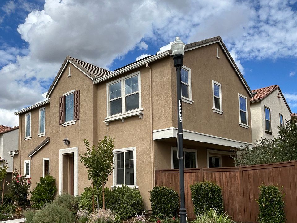 Like new! Located in the new development area in southern side of Elk Grove, this two story house is bright with neighborhood views. Small back yard may not need maintenance. Laminated floor on the ground level, carpet starts from stairs up to the second level. Parks/casino food center/Kaiser hospital/99 freeway are just about a mile away; Walmart/Safeway about 3 miles away.