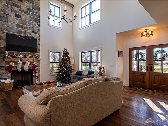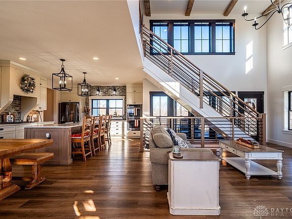 The crown jewel of this 2-acre parcel is the custom built modern farmhouse, accented by standing seam metal roofing, a wrap-around Trex deck & beautiful landscaping. Carriage house lights illuminate the entries to the attached 3-car garage. The sidewalk leads to the grand entry. As you step onto the porch, note the board & batten siding, tongue & groove wood ceiling, recessed lights & solid mahogany doors. Inside, you’re greeted w/ an amazing view of both beauty & function. Seamless transitions from the dining room, chef’s kitchen & living room create the perfect entertaining space. Note the floor-to-ceiling stone fireplace, hand-hewn beams & the unobstructed view from the open staircase. Faux brick plaster accents add texture & a sense of industrial design in an otherwise soft environment. The 9’ island is the hub of the kitchen. Topped by quartz counters, it’s surrounded by an array of cabinets, drawer bases & built-in appliances w/ range hood. Down a short hall are the large pantry room, half bath, an amazing laundry room & the primary bedroom, complete w/ walk-in closet, en suite bath, huge tiled shower, custom double vanity & wall-mounted faucets that cascade into basin sinks. Up the grand staircase, you’re greeted by a large loft, three additional bedrooms w/ large closets & chandelier lighting, plus two full bathrooms. Need more space? Follow the stairs to the lower level. Flooded by natural light, this walkout level features additional living space, a shiplap accent wall w/ hidden home protection that drops from the custom mantel, a full bath, fifth bedroom & a flex room perfect for an office, theater or guest space. The geothermal HVAC, oversized water heater & extra storage are also on this level. Outside, note the covered patio, hot tub & beautiful view of the backyard. 2 sheds provide storage, along w/ a fenced area for animals & plenty of yard to play. This could be a once-in-a-lifetime chance to see this amazing home. Schedule a private showing today!
