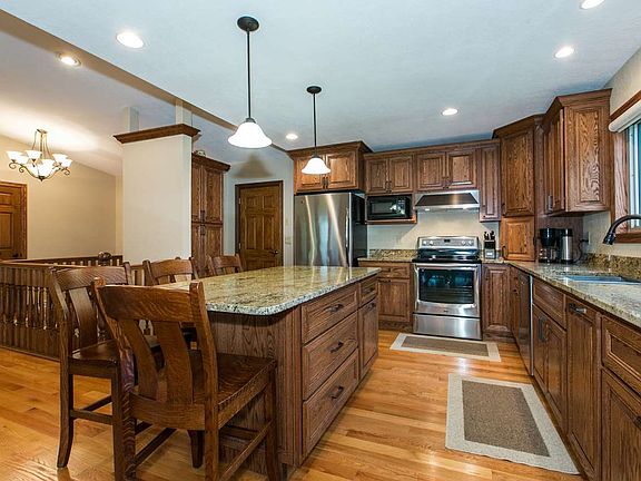 Nestle into the woods with this 5 bedroom, 3 bath all brick walkout home with a 2 car attached garage. This home has a fully remodeled upstairs with a granite kitchen, jacuzzi tub in bath, master bath with large closets. Lower level has a nice new back bar in large family room with fireplace and 2 more bedrooms and bath. Home sits on a beautiful wooded .94 acre lot.