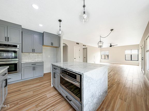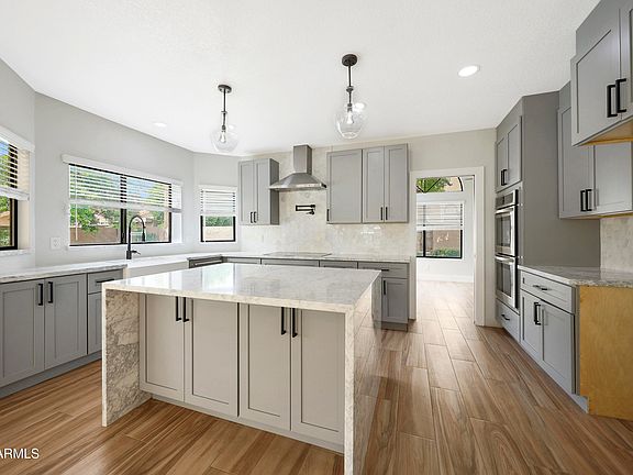 This updated home is located in the coveted Estates section of the master planned community Warner Ranch.The home was gutted & renovated in 2019 using modern finishes & floorplan.The sunken living room was filled in & beautiful ash wood look tile added throughout for a flowing transition.Gray shaker cabinets were added in both the kitchen and bathrooms for stylish esthetic & complimented by Calcutta Venato marble countertops and island.Kitchen was opened up & an island & double oven & pot filler were added as well as new appliances.Walk in pantry was added along with a bonus den/office off the kitchen & great room.Bathrooms were redone boasting modern finishes throughout.Additional laundry was added to the lovely primary suite.3 car garage. Over 1/4 acre estate sized lot features covered patio, large diving pool with water feature & spa.Oversized double gates.Roof was done in 2024,A/C 2016 & 2019, H2O 2025.Close to top rated schools,restaurants,shopping,tech corridor,easy freeway access,close to Sky Harbor,sought after prime South Tempe location! welcome home.
