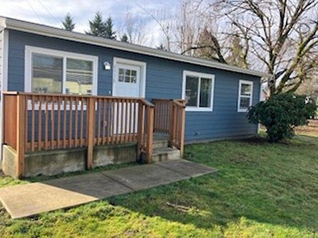 3-bedrooms, 1-bath. Small but super cute! Has a single car detached garage and a HUGE yard (we're pet friendly!). Great location on a dead end street.