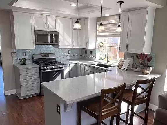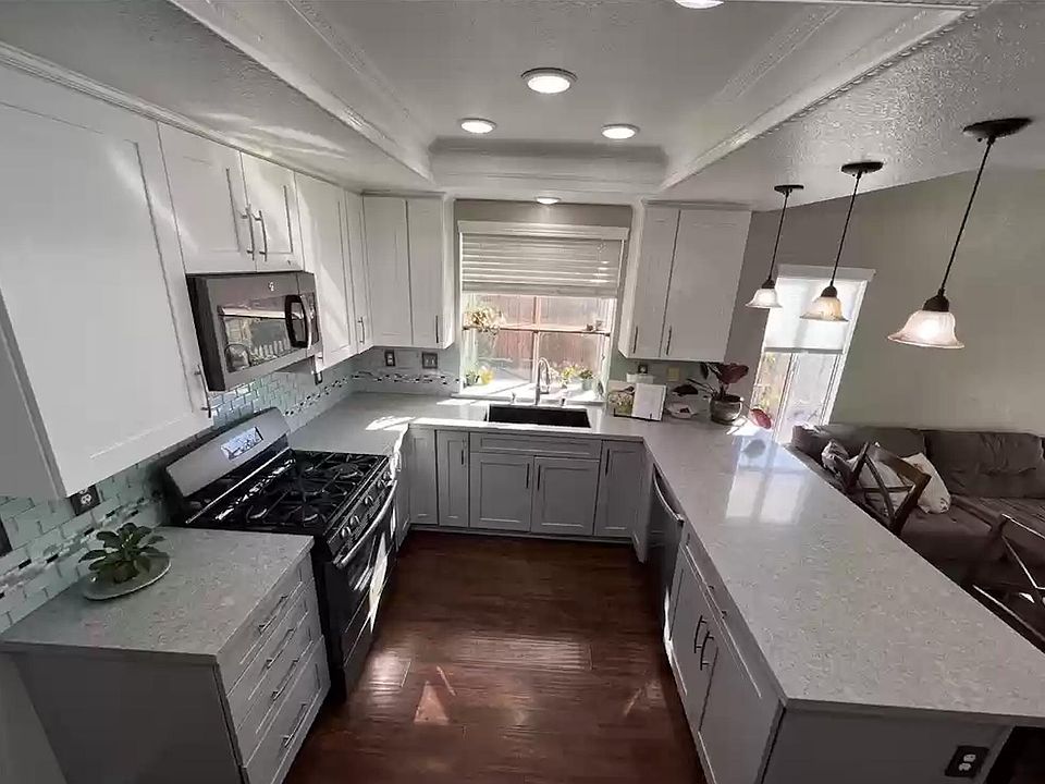 Don't miss your chance at a gorgeous single-story turnkey home located in the most sought out neighborhood in Riverside. The home is within Martin Luther King High school, Earhart Middle school, and Franklin Elementary School boundaries. The home is next to Orange Terrace Community park and baseball fields, Orange Terrace library/community center, and is in close proximity to shopping/freeways/orange groves/restaurants and much more! Walk in and be greeted with a large open living room and formal dining room with a real fireplace. Home is finished with crown moldings and vaulted ceilings. Completely remodeled kitchen shaker cabinets, quartz counter tops, new furnishings, new stainless-steel appliances, recessed spot and pendent lighting, custom ceiling woodwork, and a bay window. The kitchen opens to the spacious family room which leads to the backyard. Laundry room is fully furnished with washer and dryer that leads to the garage. The 2-car garage contains epoxy flooring throughout and comes with a drop-down ladder to access the additional overhead attic storage. The home consists of 3 nicely-sized bedrooms along with 2 modern bathrooms. The master bedroom comes with an oversized custom built in closet with additional overhead attic storage. This home has new luxurious upgraded flooring, lots of storage space, is freshly painted and ready to move in. The spacious and complete backyard is perfect for entertaining and even includes an aluminum-wood patio cover with lightning as well as a separate gated garden outside the kitchen bay window. The home also has been remodeled maximizing space, storage, light, and functionality. New window furnishings with central heat, air conditioning, and fan keeps the house well insulated which keeps electricity and gas bills low. This won't last long as the house is clean, modern, spacious, luxurious, and in an ideal location. Hardly any single-story homes left for rent in the Orangecrest area! Renter is responsible for all utilities (gas, water, electricity, cable, internet). No smoking, No pets, No subletting Renter is responsible for lawn maintenance Security deposit = 2x monthly rent