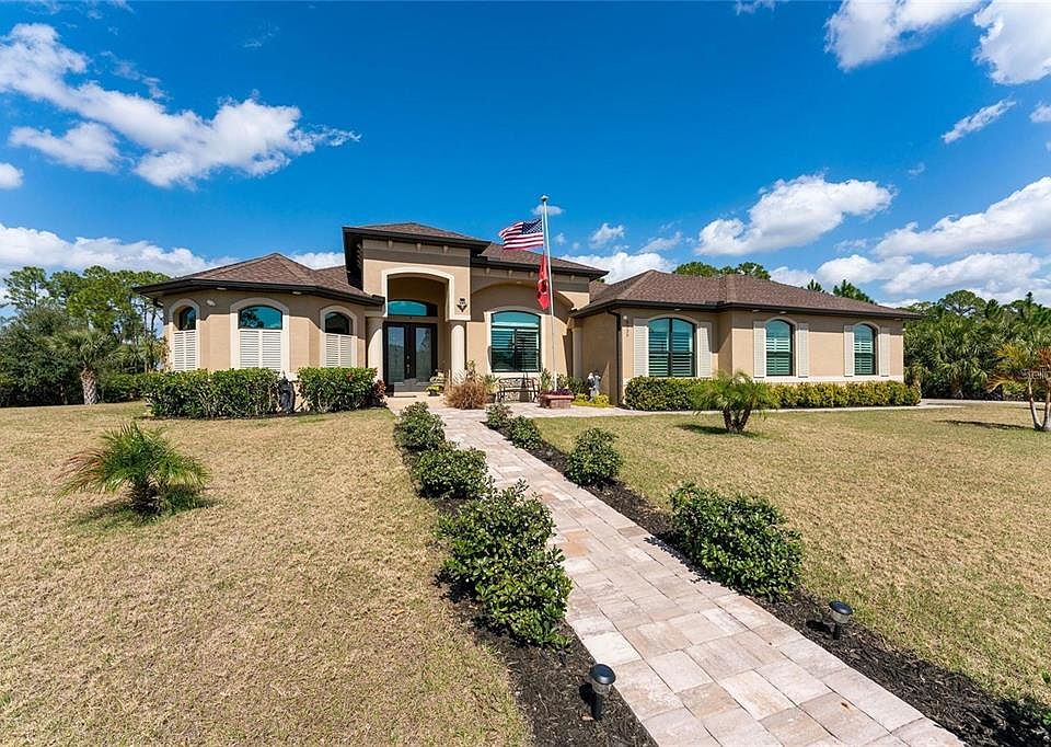 This is a very unique home on 3+ acres & almost a one of a kind available in Sarasota county! If you are looking for that home on 3+ acres where you have privacy, your own dock, put your boat in the water & fish in your spring fed lake, then this is it! Across the street is the Myakka State Park which is over 8000 acres where you can fish, camp, hike, ride bikes, ride horses, hunt, camp on the Myakka River and explore this beautiful park. Great custom home and a great location too, only 3 miles to Wellen park, home of the Atlanta Braves ball park, shopping, restaurants, 15 minutes to Englewood beach on Manasota Key, 20 minutes to down town Venice and 3 beaches, 10-15 minutes to I-75 where you can be in Sarasota in 30 minutes which has great restaurants and entertainment. Two major airports within an hours drive. Lake Geraldine is a 274 acre private community with homes from 2500 SQ FT to over 8000 SQ FT. There are 3 lakes in the community where you can have a private dock and a boat on some of them. Walking and hiking trails are around the lakes for home owners to use. Lake Geraldine is known as a "Community living in harmony with nature". There are two gated areas and one non gated area but all owners have access to everything with remotes and gate codes. The home is loaded with upgrades and built very energy efficient with impact glass. The whole house including garage & rear patio has foam insulation in the ceilings! This was a $8K upgrade. It also has a Lifetime roof with a 50 year warranty from Timberline. It has an upgraded dual stage A/C unit which saves big on the electric bills according to manufacturer. It is also plumbed for a outdoor kitchen on lanai already. Over sized garage door and garage, 8 FT high door & garage is 24W x 28 feet long for oversized vehicles. R/O under sink system & home has a soft water system. The "home site" is in a X flood zone now per seller. The home site was raised during construction at the cost of over $22K. This is an exceptional home that will sell quickly. Don't miss this opportunity. More pictures & virtual tour coming soon! High speed internet & basic TV is included in the HOA fee.