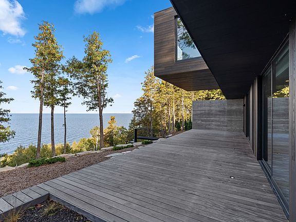 A Door County home like no other. This contemporary house seamlessly merges with the Niagara Escarpment & beautifully blends with the environment. Dramatic spiral staircase provides all-seasons bay access. Stunning main level is perfect for living, working & entertaining. Includes spacious studio/workshop. Custom kitchen boasts luxury appliances & large pantry. Main-level master bedroom suite will impress. All-seasons room on upper level cantilevered 20 feet toward the bluff with panoramic windows & dramatic water views. Upper level also hosts two bedrooms – one with gorgeous en-suite full bath. The exquisite design, views & location of this home are unparalleled in Door County. Newly-built. Move-in ready. Exceptional.