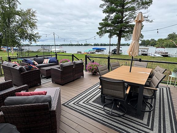 Enjoy stunning lake front living on Long Lake with this beautifully renovated ranch style home offering 1800+SF of single level living. Nearly every detail has been updated with modern finishes, making this a true move-in retreat. The gorgeous kitchen has completely updated cabinetry with added accent lighting and beautiful quartz countertops along with a stainless steel appliance package. The living room provides stunning views of the lake along w/ the spacious new 16' x 24' composite deck with accented black railing (equipped with an automated awning for the shade lovers). The large primary suite provides stunning views of the lake as well. There are two addl bedrooms along with an addl full bath and fully updated laundry room. NOTE..new carpet to be installed in BRs on 8/29. Addl features, making this an award winning home is... Heated 3 car garage, new LVP thoughout (less BRs), newer windows, furnace, air conditioner, roof and an oversized sliding glass door leading to the beautiful deck. This home combines the charm of lakeside living with the peace of mind of brand new updates throughout. Don't miss your chance to own a rare slice of paradise in Portage, located on 575 acres of fun-in-sun with boating, fishing and year-round fun. Call for a showing today.