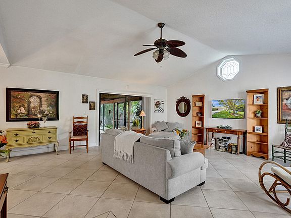 Tucked away at the end of a quiet cul-de-sac, this rare end-unit courtyard villa offers added privacy with a spacious yard and a peaceful grassy area maintained by the community. Just steps from the hidden shortcut to the Red Bridge a beloved local landmark. This 3-bedroom, 2-bathroom home features a private atrium, vaulted ceilings, and a two-car garage. The covered, screened-in patio sits beneath a majestic banyan tree, perfect for relaxing or entertaining. Ideally located near the beach and moments from Boca's top shopping and dining, this villa blends elegance, convenience, and tranquility.