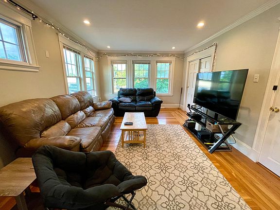 Spacious and sun-drenched four bedroom two bathroom condo in quintessential Medford. This lovely unit unfolds its square footage across two floors and features hardwood floors throughout. Open living room & dining room concept. The kitchen comes equipped with a built-in island, dishwasher and gas stove. The second floor features a built-in bar, as well as an extra living room. Some additional highlights are a three season porch and a lovely patio in the back of the house. Garage parking included. Close to Wellington T Station and easy commute to Boston and neighboring areas off 93.