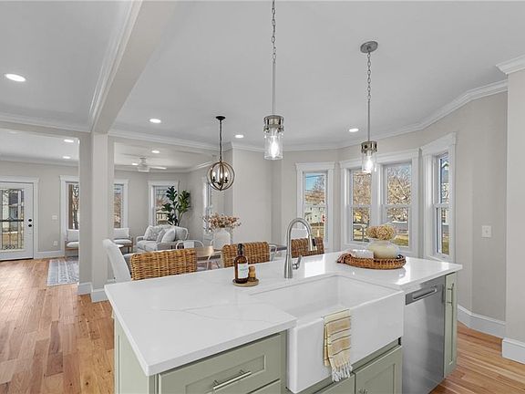 Are you looking for a turnkey, spacious, and beautifully updated home near Downtown Warren? This welcoming Colonial, comprehensively renovated with meticulous craftsmanship, is ready for you to call home. The expansive, open-concept floor plan offers bright and uplifting sightlines. The stunning kitchen features floor-to-ceiling shaker cabinetry, a calming sage island, luxurious white quartz countertops, & gleaming hickory hardwoods. A cozy dining alcove with angled windows creates an ideal sunlit gathering nook. Relax in the spacious living room with a charming fireplace or enjoy the bright, airy sunroom—perfect as a secondary living area or office. The first-floor primary en suite boasts a custom-tiled shower, shiplap accents, and abundant natural light. Upstairs, a second primary suite features a clawfoot tub, a custom-tiled shower, a walk-in closet, and a coveted private balcony. A third bedroom and additional full bath complete the second floor. The basement offers storage and plentiful space for a home gym, playroom, or office. With a brand-new central air/heating system, an oversized attached garage (with boat storage potential), detailed interior millwork, and crown molding, this home has it all. The south-facing yard is perfect for gardening or grilling, and you’re just moments from Warren’s renowned cafes, shops, and restaurants. This endearing Colonial combines modern upgrades, open-concept design, inherent charm, coveted amenities & a Downtown Warren lifestyle!