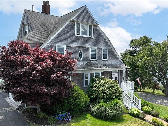 Fabulous 3600+ SF shingle style home beautifully sited on a .3 acre lot w/stunning Harbor and Boston Skyline views in coveted Allerton Hill. Lovely period details throughout including high ceilings, fir floors, wainscoting, beamed ceilings and custom built-ins. The sunny kitchen was recently updated w/fir floors, quartz counters and stainless appliances and flows beautifully to the gracious dining room and spacious family room, both w/fireplaces. The original wrap around porch was enclosed years ago, providing add'l family space on the main floor. The second floor offers 4 nice sized Bedrooms and 1 full bath, and 2 of the bedrooms have adjacent sitting rooms that offer great flex space or perhaps future en suite baths. The Primary bedroom w/PANORAMIC VIEWS is on the third floor offering a luxurious private space. Amazing large deck to enjoy the views and a large, level fenced yard w/outdoor shower! A short walk to the beach and just minutes to the Commuter Boat.