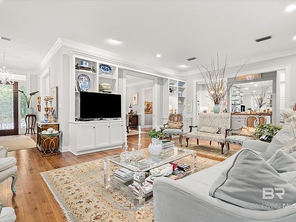 Fabulous location in Old Daphne. Beautiful Brick Home backs up to Lott Tennis & Pickleball Park. Plantation Shutters throughout, 10 ft. Ceilings, Crown molding, Gorgeous Pine Floors, Gas Log Fireplace, Bookcases. Eat in Kitchen has lots of cabinets, 5 burner gas range, New Granite Countertops, Beautiful Subway Tile Backsplash. Master Bath has two 12x9 closets, jetter tub, separate shower. Large storage closets in hallway. Wonderful fenced side courtyard has stamped concrete, Gazebo, great for outside entertaining. Alley runs behind home (Garage entry) NEW ROOF OCT 2024. A MUST TO SEE!!! *(ANY/ALL UPDATES ARE PER SELLER).LISTING BROKER MAKES NO REPRESENTATION TO SQUARE FOOTAGE ACCURACY. BUYER TO VERIFY. Buyer to verify all information during due diligence.
