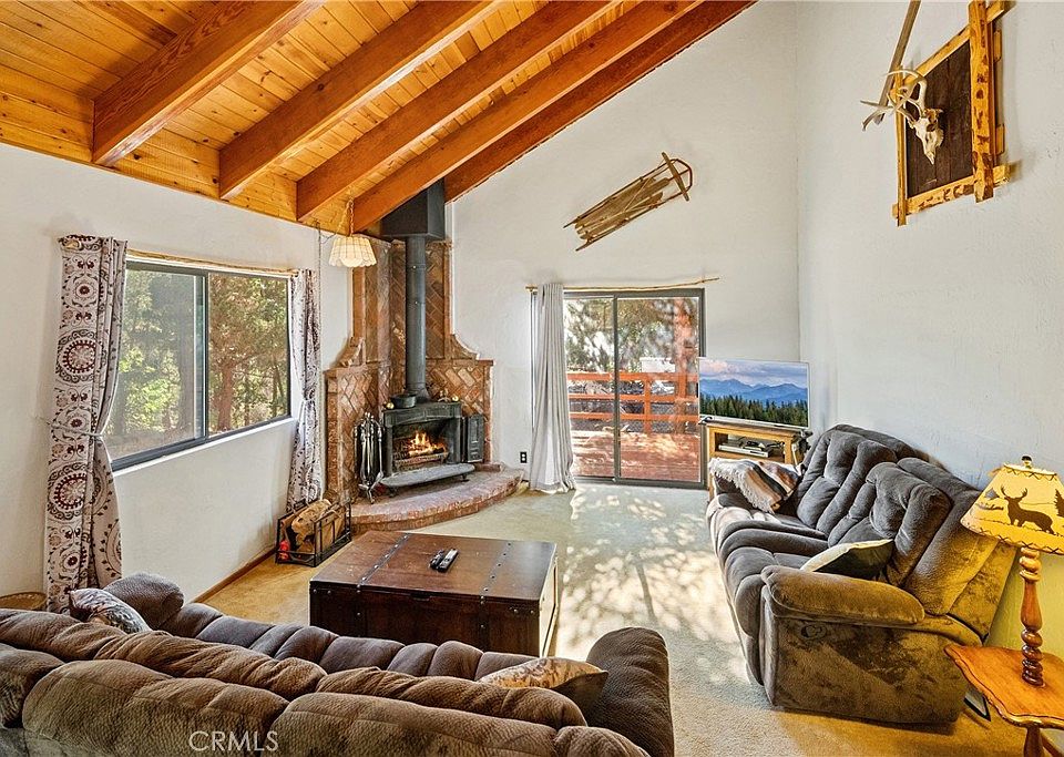 Cradled by the towering oaks and pines at the edge of the National Forest, this mountain retreat feels like a gateway to another world. Trails for hiking and biking wind straight from your doorstep into endless wilderness, where time drifts at the pace of whispering pines and distant birdsong. Inside, soaring vaulted ceilings and picture windows capture the forest in shifting light--morning sun spilling across the open floor plan, twilight casting a golden glow. 2 bedrooms, 2 full baths, and a cozy loft offer intimate spaces for rest, each touched by the serenity of its surroundings. Front and back decks invite you to linger, whether watching the sky blush at sunset or tracing constellations on crisp, starlit nights. With a mudroom, ample storage, forced-air heating, and more, this home blends comfort with the quiet magic of the mountains--a place to both lose yourself and find yourself again.