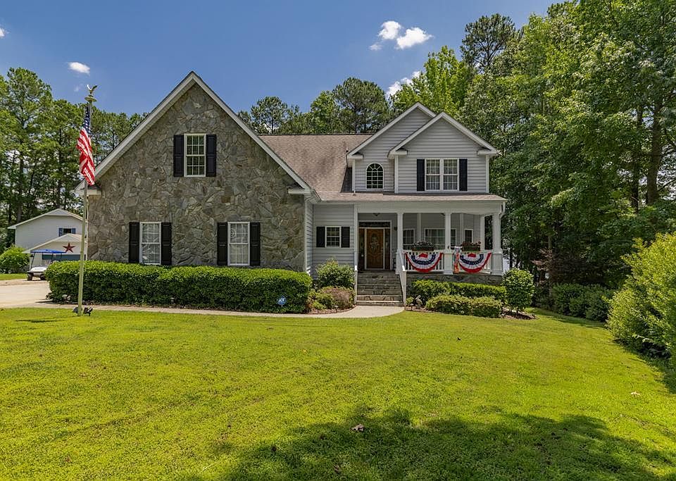 Welcome to this beautifully appointed waterfront home on Lake Gaston, where comfort meets quality craftsmanship. Sitting in the coveted Timber Creek subdivision known for its community conveniences such as a pool, day slips, and boat ramp. The home features 3 bedrooms, 3.5 baths, and a spacious primary suite on the main level with a newly tiled bathroom including the shower and tub. There is also an additional primary suite located on the second floor. A sunroom and an undesignated room provide flexible space. The gourmet kitchen is equipped with granite countertops, high-end appliances, an instant hot water dispenser, and a new gas cooktop. Rich hardwood floors add elegance to the main living areas. Outdoors, a large private deck with an electric retractable awning overlooks the serene water. A wooden walkway leads to a double boat dock with bar seating, granite countertops, storage cabinets, and boat lift. Additional features include a 2-car attached garage, finished room over garage, concrete driveway, full-house generator, security system, and leaf gutter guards. This is refined lakefront living—schedule your private showing today.