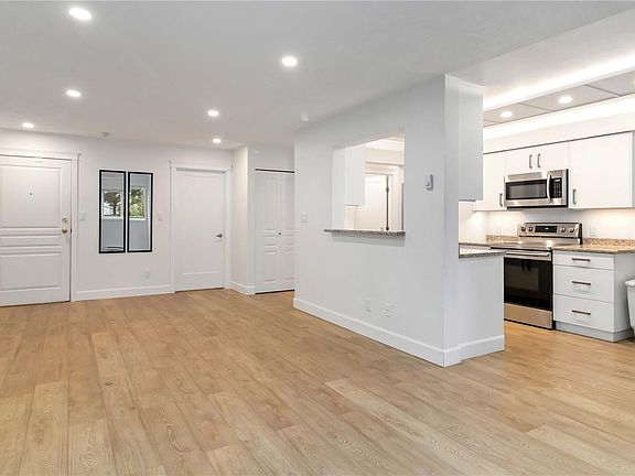 Modern kitchenStainless steel appliancesLaminate countersLaminate floorsUpdated bathroomsNeutral paintCozy gas fireplace