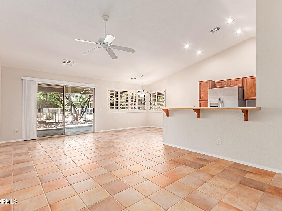 Welcome to your perfect 2 bedroom, 2 bathroom retreat in the heart of Sun Lakes! This charming home offers a spacious, open layout with soaring vaulted ceilings that create a light and airy feel the moment you walk in. The great room flows seamlessly into the kitchen, dining area, and out to the backyard, perfect for relaxing or entertaining. You'll love the kitchen, complete with rich wood cabinetry, stainless steel appliances, and a breakfast bar ideal for morning coffee or happy hour with friends. Both bedrooms are generously sized and offer private en-suite bathrooms, providing comfort and privacy for guests or dual living. Step outside to your peaceful backyard, a perfect space for unwinding, gardening, or enjoying Arizona's beautiful weather. Whether you're looking for a full time residence or a winter getaway, this home has it all style, space, and the perfect Sun Lakes lifestyle. This is the one you've been waiting for!
