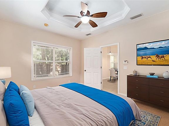 Under contract-accepting backup offers. One or more photo(s) has been virtually staged. Welcome to Willow Oak Plantation! This beautiful 3-bedroom, 2-bathroom home offers comfort, style, and space in a sought-after neighborhood. Step inside to an inviting open floor plan featuring vaulted ceilings in the main living area that create a bright and airy feel. The formal dining room and primary suite both showcase elegant tray ceilings for an added touch of sophistication. The primary bedroom includes a large walk-in closet and a private ensuite bathroom with a whirlpool soaking tub, separate shower, private commode room, and dual sink vanity. Relax or entertain outdoors on the cozy covered and walled screened lanai, overlooking a spacious backyard that’s partially fenced—perfect for pets or play. The oversized two-car garage offers plenty of room for storage, hobbies, or larger vehicles. Enjoy all the charm and convenience of living in Willow Oak Plantation, close to parks, schools, shopping, and dining.