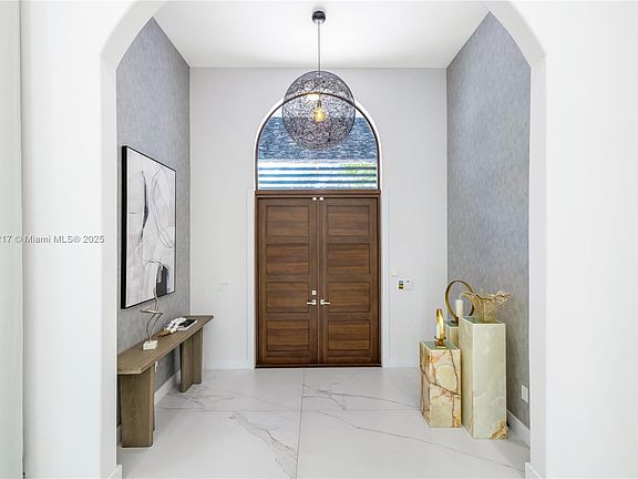 Stunning gated 1-story 8,126 total SF residence on a quiet cul-de-sac in prime North Pinecrest, steps from Gulliver & Beth Am. Set on a lush 1.1 acre with a 2-story, 1,300 SF guesthouse, treehouse, & ample parking. The 6-bed, 5.5-bath main home offers an office, new impact windows/doors, & Firenze Carrara polished marble tile throughout. Gourmet kitchen boasts a leather-textured marble island, Veneta Cucine cabinetry, & Miele appliances. Guest bath features full-height, single-slab Italian tile. Primary suite includes dual walk-in closets & a spa-style bath with Kohler DTV+ faucet less system for steam, audio, chromotherapy, & lighting. Whole-house Brilliant system manages lighting, Zoom intercom, & Sonos audio indoors/out. Outdoor oasis includes a new summer kitchen & resort-style pool.