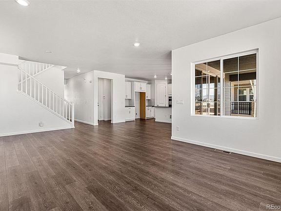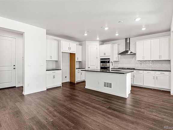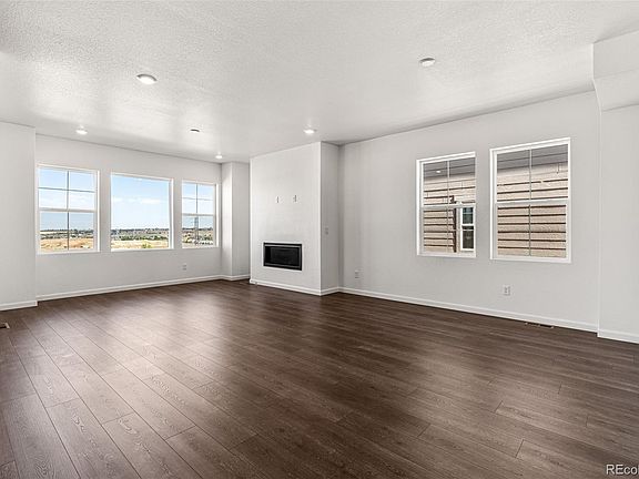 MLS#3989724  Ready Now! The best-selling Estes floorplan offers a two-story design with an inviting entry, main-level bedroom, and full bath. The spacious kitchen features a large pantry and eat-in island, flowing into an airy great room and dining space. Step outside from the great room to enjoy Colorado sunshine with expansive outdoor living options. Upstairs, discover a light-filled primary suite, roomy loft, two additional bedrooms, two full baths, and a convenient laundry room. This remarkable home combines captivating design with versatile spaces, creating the perfect setting for unforgettable family memories. Structural options include: enhanced elevation C, 14 seer A/C unit, bedroom 4 with bath 3, 9' unfinished basement, 8' x 12' glass sliding door, moder 42" fireplace, double 8' glass door at study, and 8' doors on main level.
