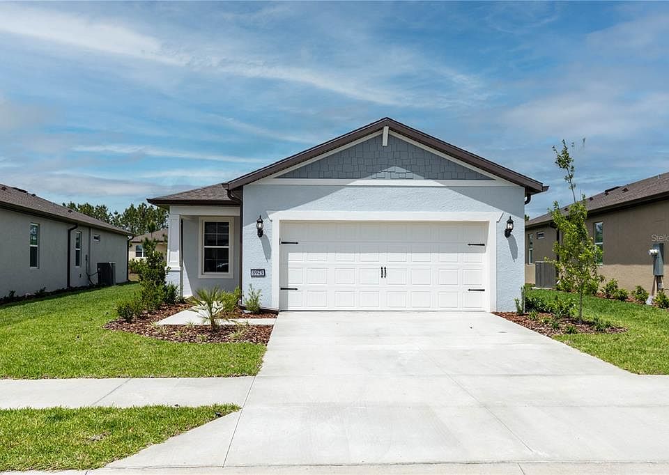Why wait to build a home when this beautiful NEW construction home is waiting for you! Located in the beautiful community of Del Webb Stone Creek this brand-new Contour Model offers 2 bedroom, 2 baths PLUS a den. The kitchen offers light gray cabinets, quartz countertops, stainless steel appliances and a huge island, great for entertaining and extra storage. The master bedroom comes with a trey ceiling and spacious master bath. Double vanity sinks, walk in glass enclosed shower with bench, large walk-in closet with additional linen closet. Luxury vinyl plank flooring throughout the home and tile in the baths. Triple sliders lead you to the extended lanai already pre-wired for a tv and cable. Gutters and spotlights already in place. The spacious 2 car garage comes with an epoxied floor and a hybrid water heater. Home is beautifully landscaped and ready for you to move in. Don't let this opportunity pass you by, call today for a showing!