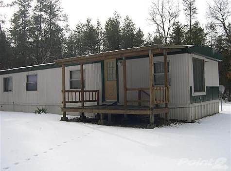 Mobile With Large Pole Barn'' Great location, snowmobile and ORV right from your door to the designated trails mile away. 1.39 acre site with 1981 mobile home with 3 bedrooms, 1 bath, front and rear decks. The home was newly remodeled with all new carpeting and big insulated windows, and a large vinyl door wall. The 32'x32'x14' insulated pole barn has cement floors, a 13' door for that tall motor-home or boat storage, plus room for all your toys. There is also an outhouse for an extra facility. Partially wooded lot with colorful trees and lots of flowers makes this an ideal Up North'' getaway! Brokered And Advertised By: Big River Properties Listing Agent: Lee Krause