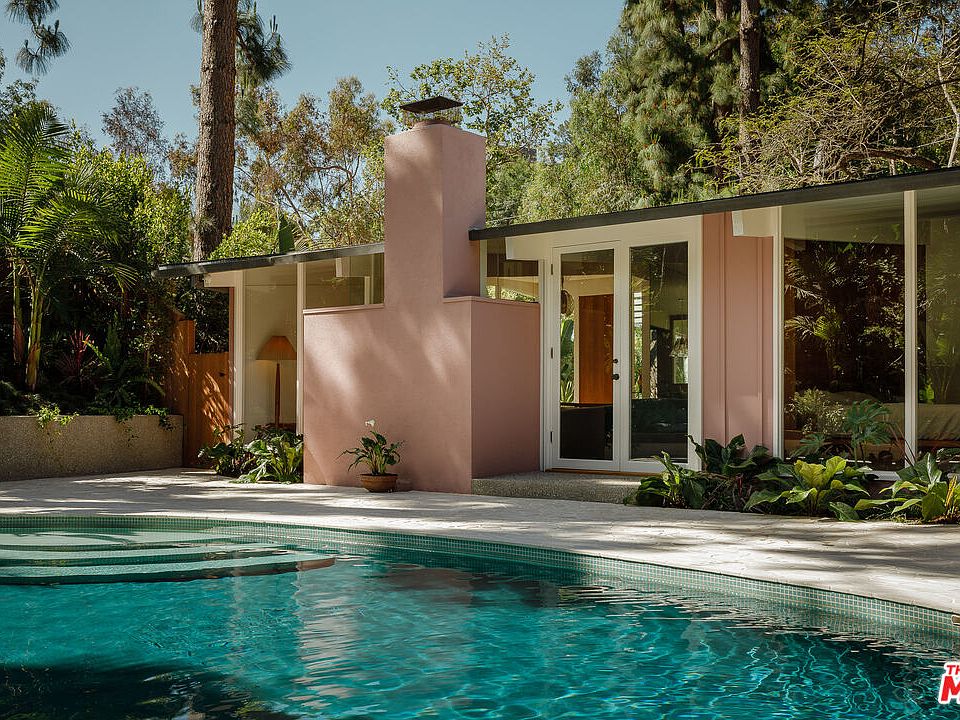 OFFERS DUE 6/4 BY NOON: The Crown Jewel of Laurel Canyon. Set privately behind high walls on a lush and magical 1/4 acre flat lot and nestled on the most prestigious stretch of Wonderland Park Avenue, a street revered for its architectural pedigree and connection to mid-century modernist legends like Garrett Eckbo and Pierre Koenig, no detail has been spared in the home's masterful restoration, which draws clear influence from the iconic ethos of Joseph Eichler. This 1955 post-and-beam mid century jewel box is the epitome of form and feeling. Every room is immersed in nature and light, captured through walls of glass that frame the verdant landscape. A true one-of-a-kind, 3bed 3bath glass house compound of mid-century architecture at its most soulful and refined. The open living bathed in natural light features a fireplace, custom built-ins with Italian mohair, Waterworks finishes, bespoke millwork, and Japanese brick grounding the home with organic warmth, while custom 8ft white oak doors with tailored hardware add a sense of sculptural detail and craftsmanship throughout. Appliances are by Bertazzoni, bathrooms showcase Agape Italian sinks, Japanese ceramic tile, hand blown glass windows, and vintage Italian Murano glass light fixtures. Even the door knobs, crafted in 1955 by Luigi Caccia Dominioni, are a nod to the home's layered and tactile design. Consisting of two mesmerizing structures, the guest house has been tailored as the third bedroom/office and bath, thoughtfully designed for use as a screening room, creative studio, or tranquil guest retreat. The grounds unfold like a private park where the front yard is a magical wonderland of grasses and palms while the backyard is wrapped in travertine flagstone anchored by an emerald pool under a canopy of incredible mature trees, echoing the magic of Big Sur living. A whole house water filtration system ensures modern comfort without compromising on wellness. All vintage furniture has been curated to complement the architecture and is available for sale, offering buyers a fully realized turn-key experience.