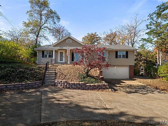 Seize this golden opportunity to plant roots in sought after Lindbergh schools! This ranch gem is waiting to be your storybook beginning from the charming covered porch to the large covered rear patio and everything in between. Vaulted ceilings, large windows & wide open spaces set the tone in this 2 bed/2 bath home with over 1400 sq ft on the main plus an unfinished basement w/roughed in bath ready to boost the sq ft with a little sweat equity! The semi-open floor plan features a large living/dining space offering flexible living and the gorgeous bay window gives you that extra space to extend the table for those holiday gatherings. Entering the family room seals the deal and you’re already picturing cozy evenings in front of the gorgeous fireplace that’s flanked by large windows providing year-round scenic views. Feel the warmth of the sun as you whip up dinner from the overhead skylight and take advantage of the countless cabinets & ample counter space in the well appointed kitchen. Did we mention the TWO generous sized bedroom suites are ideally situated on opposite ends of the home and feature walk in closets & private baths; AND there’s a main floor laundry. Lower level is a work in progress with a solid start and includes a rec room, workshop area w/workbench & storage, wet bar, storage area w/shelves, roughed in 1/2 bath, and an electric dumb waiter perfect for hoisting those grocery bags! Bonfires, BBQ’s & outdoor gatherings will be the new norm with this enviable .26 acre lot, and the covered rear patio with ceiling fan is the cherry on top. 2025 architectural roof/shutters/landscape rock/garage door opener, HVAC ~ 2016, dumb waiter ~ 2023, circle drive, 2-car garage, desirable floor plan, award winning Lindbergh schools, and fabulous location! Don’t miss a rare opportunity to snatch this AS-IS property and make it your own.