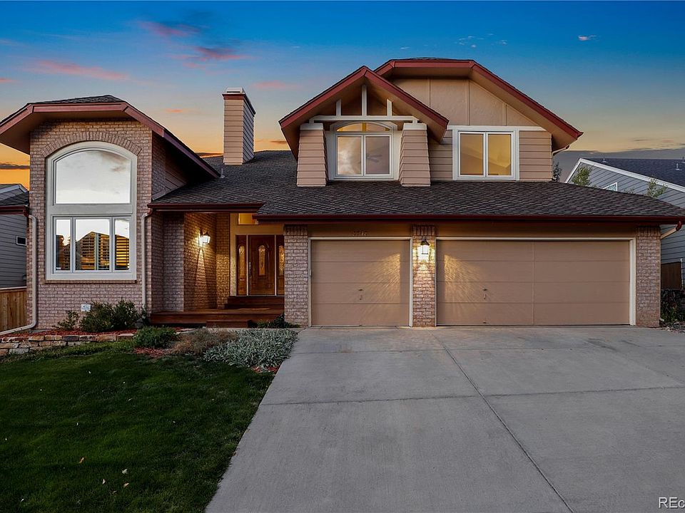 Don't miss this rare opportunity to own a beautiful home in the highly desirable community just south of Stratton Ridge! This rare five-bedroom home truly has it all, whether you're looking to raise a large family or host amazing gatherings, this home is built for making lifelong memories. From the moment you walk in you'll be greeted by an abundance of natural light pouring in through the large clerestory window in the formal sitting area. The nearby formal dining room can easily accommodate a table for eight people. Your journey continues through the stylish butler door and into the gorgeous and well-appointed eat-kitchen, featuring corian counters, a stylish custom backsplash, and no shortage of cabinet and pantry space. The custom island has cutouts for seating, and a built-in wine chiller! Venture into the living room and the size and versatility of this main level becomes quickly apparent. Whether you're having people over for the big game or you just want to cozy up around the fireplace, the oversized living room is perfect for both. When it's time to relax, head upstairs and feel your cares disappear as you step into the instantly inviting primary suite complete with a large retreat and private fireplace, and a reading nook facing the backyard. The primary bath includes dual vanities, a large soaker tub, a separate shower, and it connects to an enormous walk-in closet! Down the hall you'll find three more bedrooms and another full bath with two sinks. Head back downstairs and into the finished basement, and you'll find a recently added 5th bedroom next to a 3/4 bath, and a third living space! Your tour comes to a breathtaking conclusion as you step outside into the lush back yard, featuring a covered patio, a meticulously cared for lawn, and a menagerie of colorful trees and bushes. Sitting on over a quarter acre, this outdoor space is the perfect combination of function and beauty. This home is only steps away from the trailhead at Sand Creek Park!