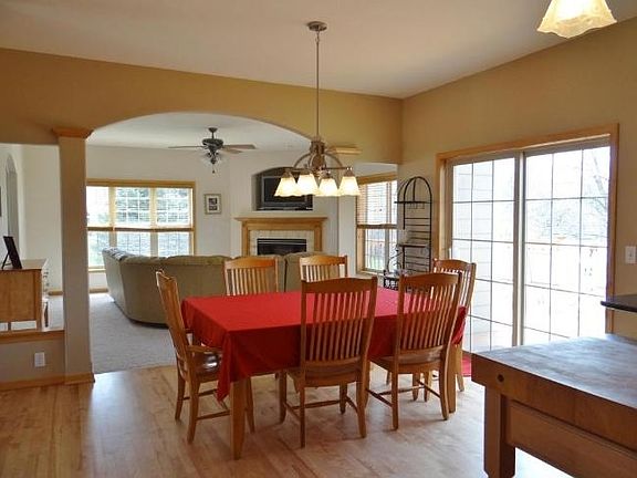 A rare find in Creekside Estates. Leaded glass front door and two-story entry. Nine foot ceilings, Maple cabinetry and floors, decorative ledges and archways. Great room has fireplace and opens to a kitchen featuring granite counters, island, dinette, stainless appliances and walk-in pantry. Nearby half bath and laundry. Huge master suite. Rec room, wet bar and half bath. Party deck. Insulated four car garage. Five minutes to the Interstate. Gifford school district.