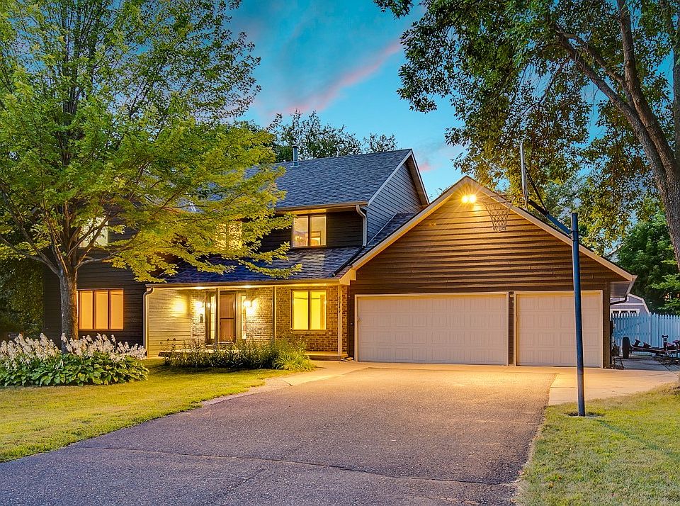 This listing is offered by the Nick Leyendecker Team who can be reached directly at 952-388-0000. See the virtual tour for a full property video. This is a rare opportunity to own a spacious 2-story on a private, maturely wooded lot in a cul-de-sac with lake views. Walk directly from your fully fenced backyard onto the beautiful Rice Lake walking trail that connects to the regional bike trail system. The home has been very well cared for and updated by the current owners. The main floor is bright and open with a large kitchen and a sun room. There are 4 bedrooms up including a private master suite. The basement is bright and spacious.