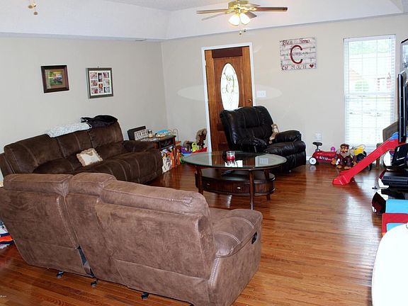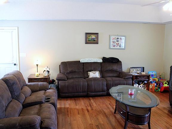 This beautiful home is ready to move into! It features hardwood floors, 4 bedrooms, 2 baths, living room with trey ceilings, large master bedroom, newly remodeled master bath with a tile shower and jet tub and a huge walk in closet, dining room, new central unit, storm shelter in garage, above ground salt water pool, detached garage/work shop, 2 additional detached carports all on one acre lot