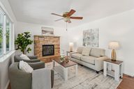 - Fireplace features: Living Room, Raised Hearth, Stone, Gas