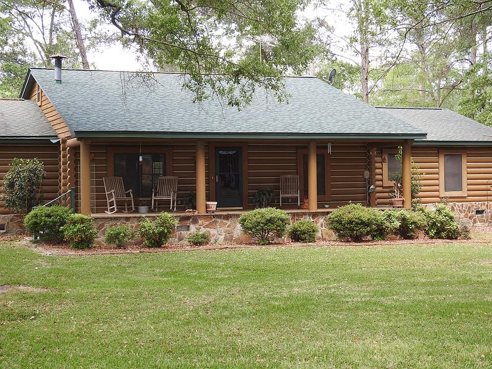 Unique paradise located on 14+/- acres that adjoins a shared 10 acre stocked pond & dock! Beautiful log exterior home has a custom gourmet chefs kitchen with Brazilian granite, stainless steel appliances, extra wide freezer and fridge, 3 ovens, & beautiful Italian porcelain tile flooring! 2 full size dining rooms, great room and a large sunroom with gorgeous views of the pond and backyard! Oversized master suite with walk in closet, large secondary bedrooms & bath. The guest bathroom has double vanity and tile floors. Large family room with wood burning stove and separate office. Upstairs, there are two large bonus rooms that could be used as bedrooms/rec rooms or for additional storage. A 1600 sq ft cottage with half bath could be used for guest housing or an office. It consists of 1400 sq ft of heated and cooled living space with the remaining 200 sq ft being used as a wired workshop. Fenced in areas for animals/pasture. Nice wired barn with loft. Peaceful waterfront country home!