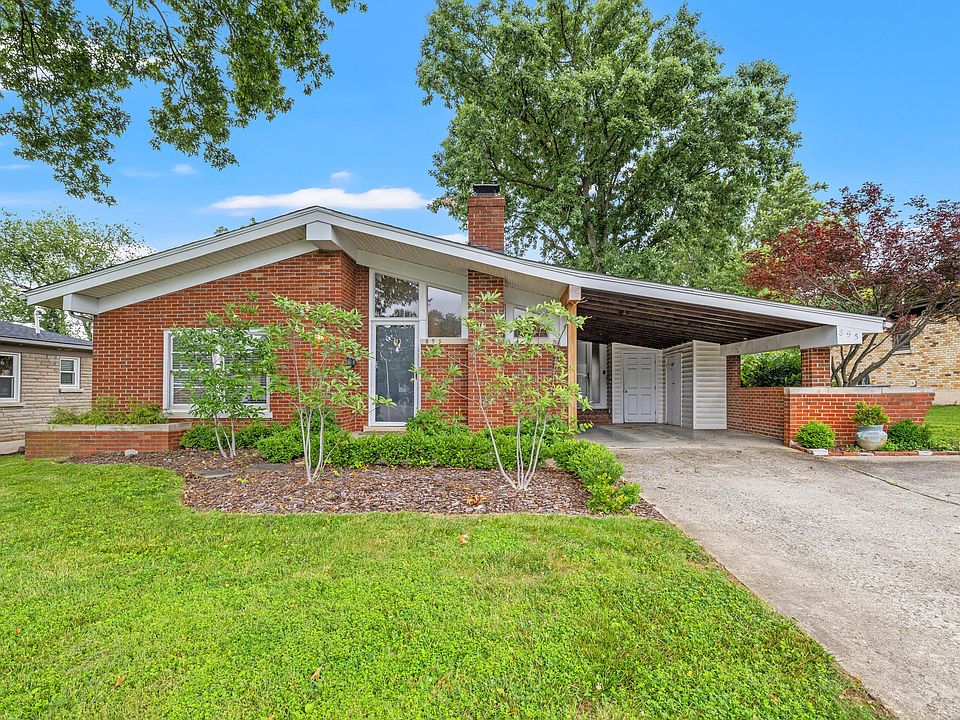 Move in ready Mid-century modern ranch inside New Circle! This unique and fun all-brick home is updated with refinished hardwood floors, newer paint throughout, newer roof and open layout. Just inside you're greeted with a gas fireplace and loads of natural light flowing in. Kitchen overlooks the great room with vaulted ceilings and has views to a den with custom brickwork and woodburning stove. This 3 bedroom and 2.5 bath home is even more spacious than the square footage shows. Outback the yard is privacy fenced and there's a covered back brick patio with mature trees. Attached carport with decorative brick work. Located dangerously close to Dad's Deli, Home Depot, and gardenside Kroger. Easy access to UK, downtown Lexington, Keeneland and Bluegrass Airport. Current owners would stay forever but are being moved for work! Schedule your private showing today!