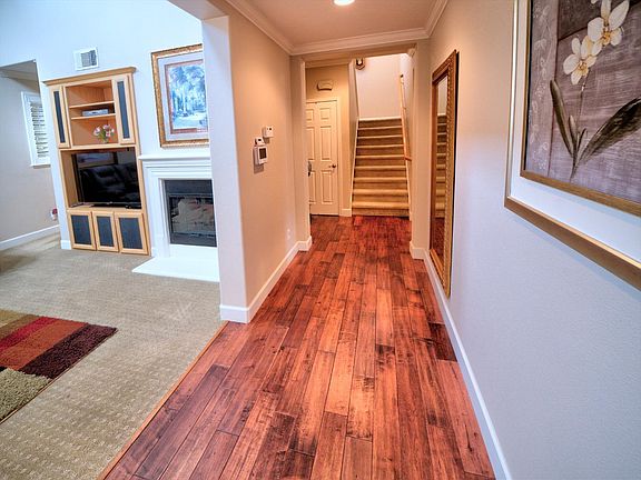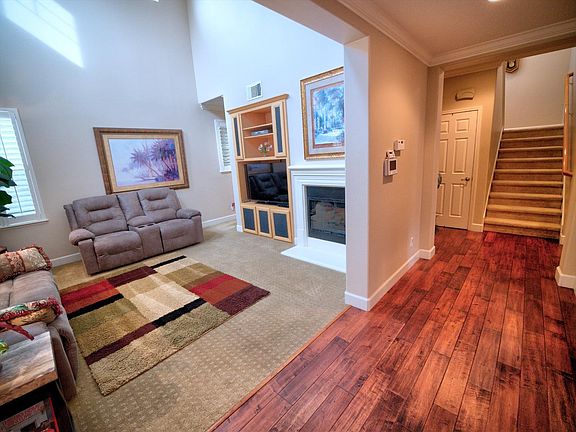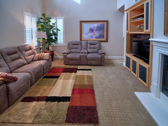 Lovely well maintained 3 bedroom/3 full-bath duet home; approx. 1769 square feet. Full bed and bath downstairs. Master and guest suites upstairs. Kitchen with granite counters, large breakfast bar and gas cook-top stove. Custom glass door cabinets allow for plenty of storage! Hardwood flooring from entry through kitchen and dining space. Living room with vaulted ceilings, berber carpet, gas log fireplace and TV/entertainment niche. Guest and downstairs bathrooms with marble counters and marble tile flooring. Lots of amenities offered in this Walnut Park special! Solar panels by Future Energy are OWNED; not leased (instant savings for buyer), plantation shutters, water softener, reverse osmosis water treatment system, crown molding, inside upstairs laundry-room, back-patio with fire-pit. Slider door from downstairs bedroom offers a second patio. Come and see this charmer for yourself!