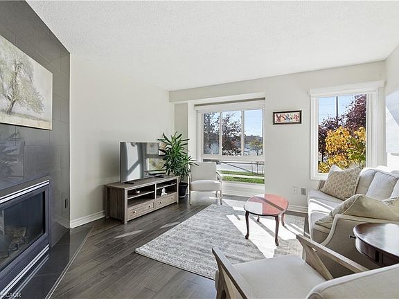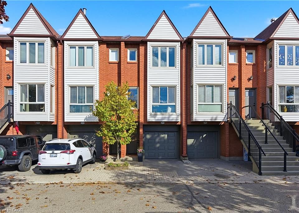 Discover this beautifully updated 2-bedroom, 2-bath, condo townhome in one of Burlington's most desirable communities. Perfectly situated walking distance to Mapleview Mall, grocery stores, downtown Burlington, and Spencer Smith Park, this home offers the ultimate in urban convenience with fast access to major highways and the GO Station. Step inside to find a bright, flowing layout designed for modem living. The updated kitchen features stylish finishes, with all new appliances, ample cabinetry, and a walkout to a private terrace — ideal for morning coffee or evening BBQs. The cozy living area is anchored by a gas fireplace, creating a warm and inviting atmosphere for relaxing or entertaining. Upstairs, you'll find two spacious bedrooms and a full updated bath including a soaker tub! The lower level provides direct additional living space or spare room, inside access to the single-car garage, and laundry area. Enjoy a low-maintenance lifestyle with exterior upkeep taken care of, giving you more time to explore everything this vibrant community has to offer. Whether you're a first-time buyer, down sizer, or investor, this move-in ready townhome delivers comfort, style, and unbeatable location!