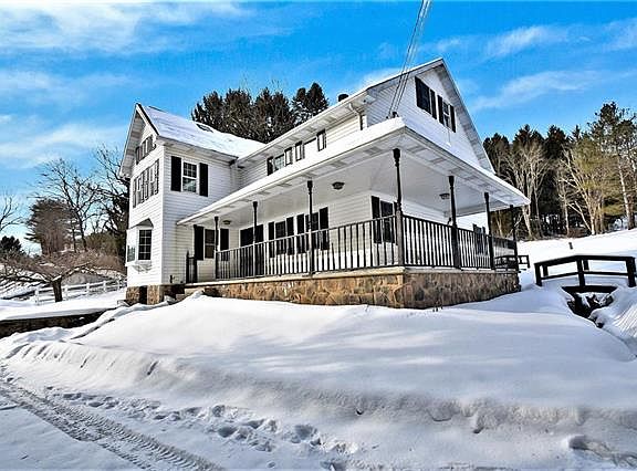 Secluded oasis, this 5 bedroom 3 bath home offers 2,880 sq ft. of living space. Situated on 11+ acres in Lower Towamesing Twp. Private driveway with welcoming wrap around porch and detached 2 car garage with finished 2nd floor of garage. Welcoming entrance to beautiful family room with two sided stone fireplace. Large eat-in kitchen with oak cabinets and stainless steel appliances, with a full bath on 1st floor. The 2nd floor has five generous sized bedrooms and 2 full baths and laundry room. The 3rd floor offers tons of added storage eaves and endless possibilities for use of this space. The perfect backyard to host, featuring fenced in in-ground pool and nice picnic area close to the pool. Must see it is one of a kind with lots of land.