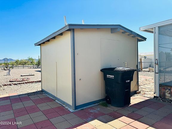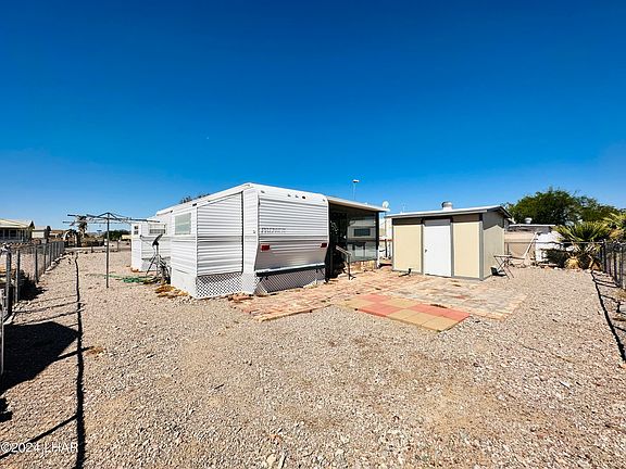 Beautiful scenic view of Q Mountain from your front yard. This fully fenced, deeded lot with a double RV swing gate is located in Q Mountain Vista. This lot includes a 10' x 8' shed, outdoor patio perfect for BBQ/Firepit area for gathering with friends. Convenient desert access and minutes away from all of the Tyson Wells events including The Big Tent. *1999 Hy-Line Premier travel trailer conveys with the property 'AS IS'. Trailer features 344sf living space, 1B/1B, 2 slide outs, 2 A/C window units, 2 propane tanks and a 416sf built in screened porch with a ramp. A little TLC will go a long way... Call today for more information.