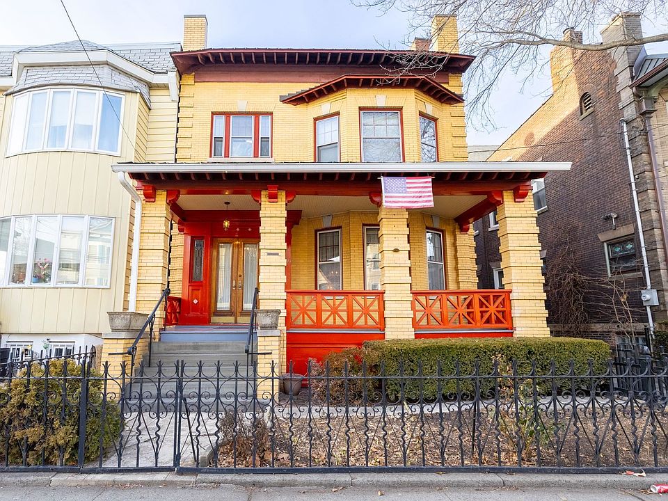 Rich in character and timeless in design, this stately brick and steel home offers over 3,000 square feet of beautifully maintained living space. Dating back to the late 1800s, it seamlessly blends historic charm with thoughtfully curated modern updates. Originally built as a legal two-family residence, the property is currently configured and lived in as a large single-family home—offering unmatched flexibility for multi-generational living, future rental income, or continued use as a grand private residence.